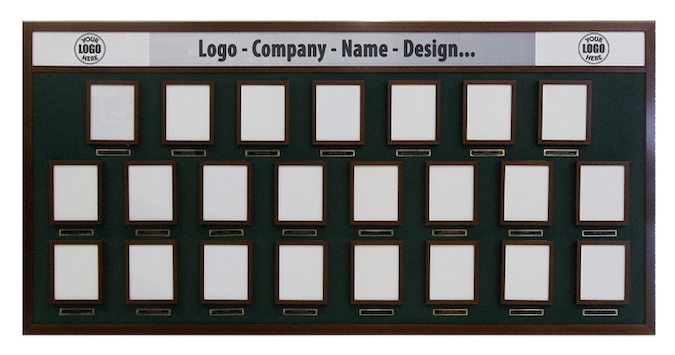 Position the frames as you like to fit the width of the board. You have a choice of frame and background colors. We will use your unique colors, logo, and icons to help you design the board and provide production proof for approval.