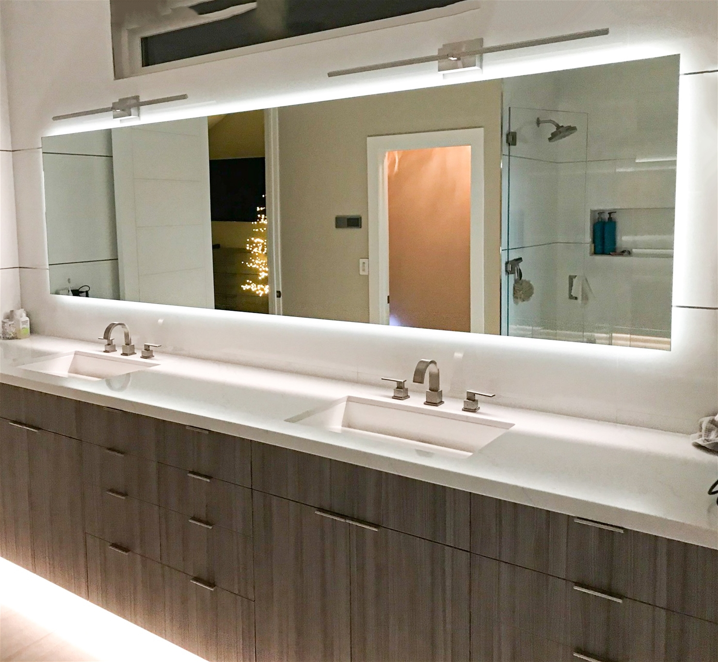We provide the mirrors for your contractor or electrician to attach the LED lighting. We custom make mirrors to your size and provide the structure for safe and secure attachment of LED. Note that the mirror does not come with LED which must be purchased separately and professionally attached on the job site.