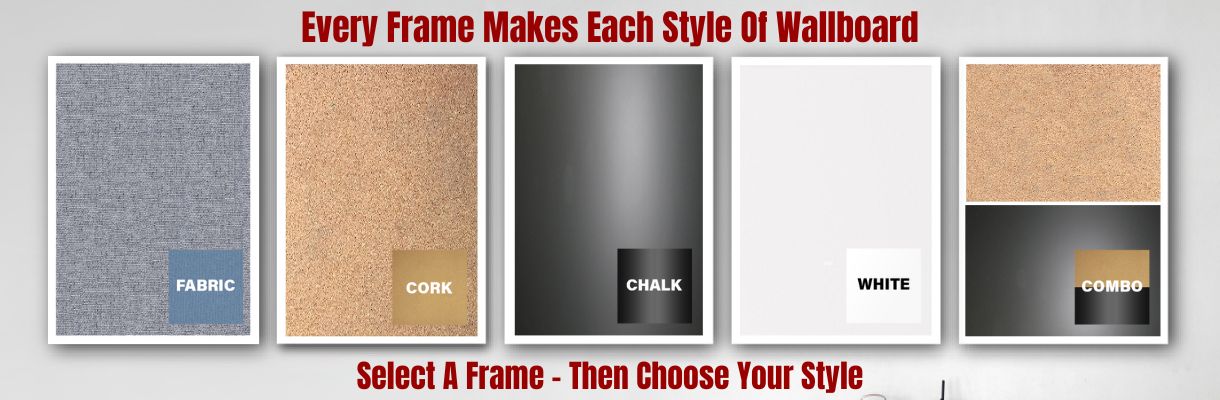 Personalize your blackboard with a combination of cork, dry erase or fabric wrapped cork.