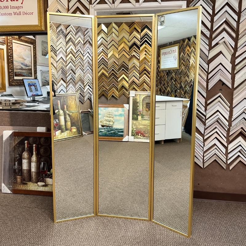 Our custom made 3-panel dressing mirrors are the perfect addition to any dressing area. With a full 360-degree view, you'll feel like you're in a department store changing room! We offer mirrors in any size to fit your needs. Our full view winged dressing mirrors are especially functional, as they allow for complete visibility. Plus, our mirrors can be both framed and frameless to match any decor.