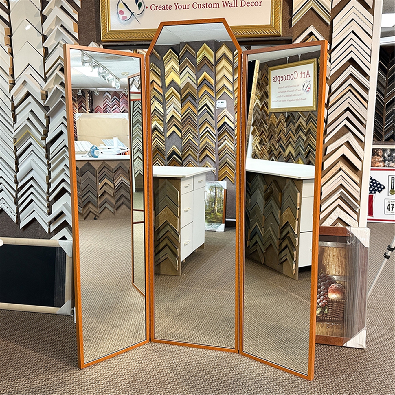 WM1847 - Wood Frame 3 Panel Mirrors - 8 Colors - Flat or Raised Top