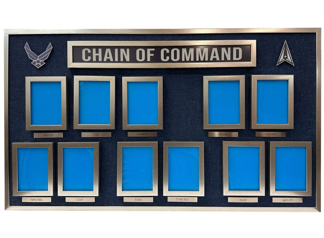 Our Chain of Command Boards work well for the US Army, Navy, Marine Corps, Air Force, Space Force, and National Guard. Our Chain of Command organizational charts, business charts, and leadership boards are custom-made and shipped throughout the United States.