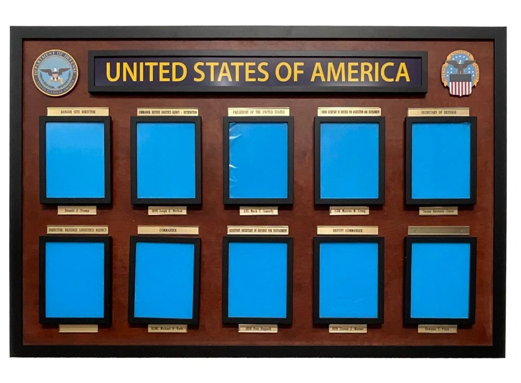 Rich wood-tone background—ideal for federal or military leadership displays.