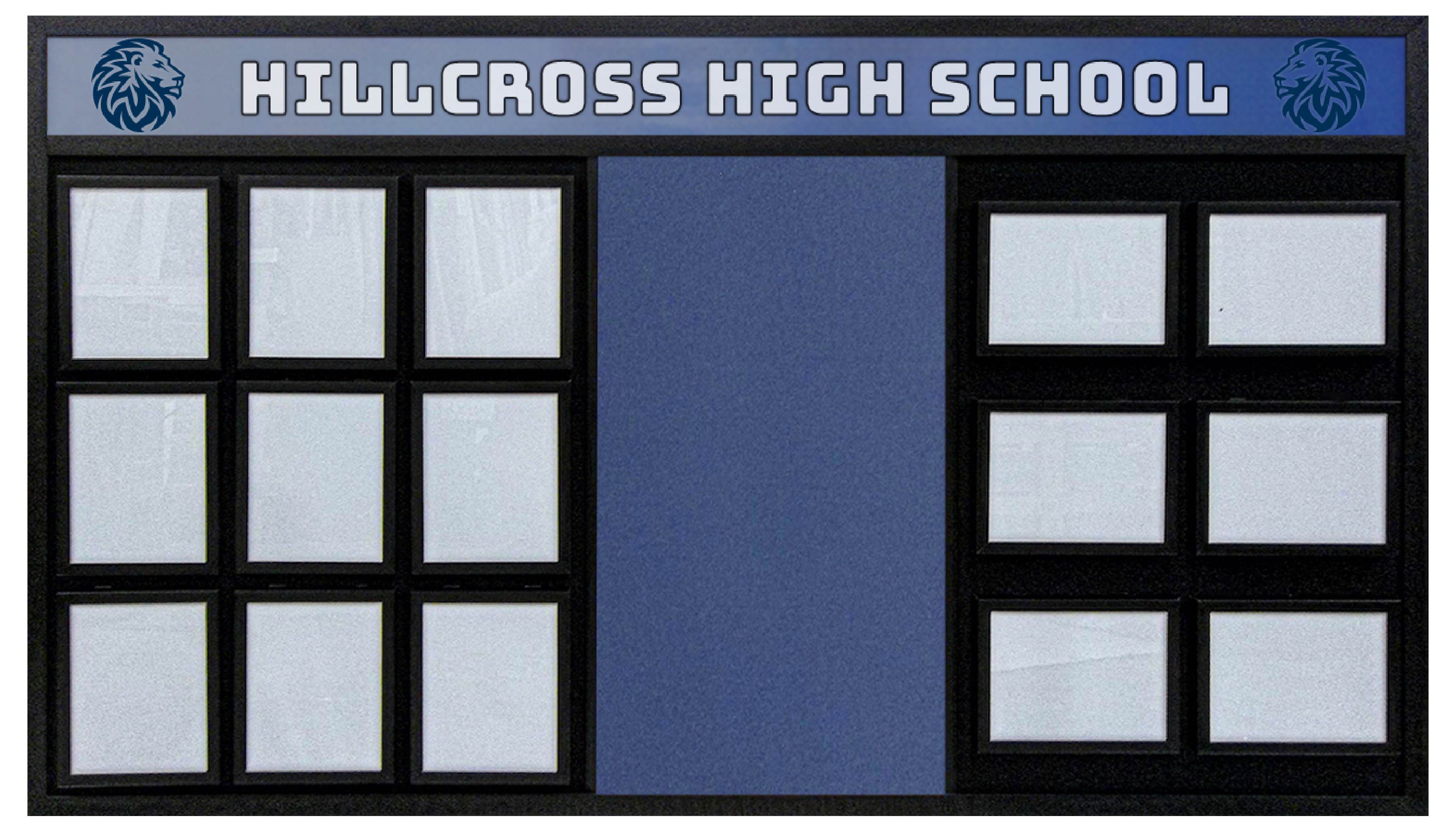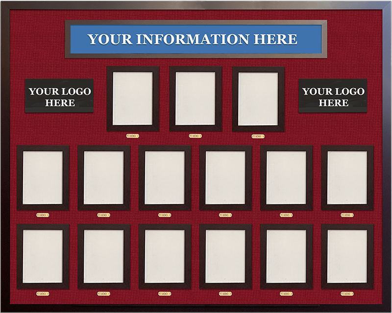Sleek command board with 15 photo frames and dual unit emblems, ideal for displaying leadership hierarchy in military or public service environments.