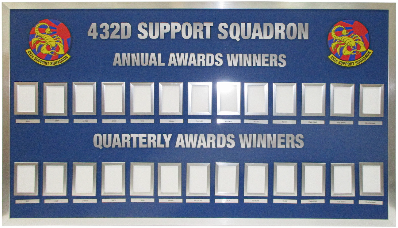 Wood frames for enduring custom chain of command boards.