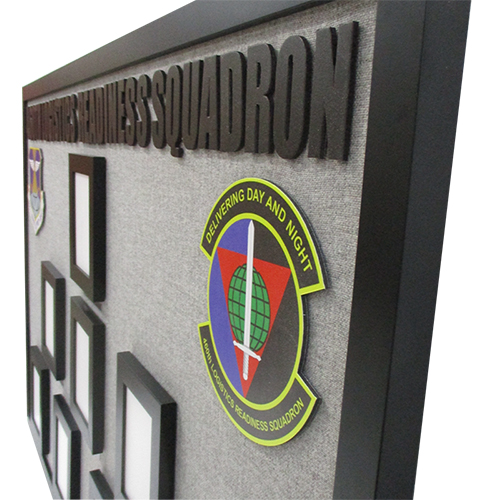 We offer a variety of fabric colors tailored to seamlessly match your unit's specific colors and insignia. Whether for a command post office, or common area, our boards provide a polished and cohesive representation of your unit's hierarchy any structure.