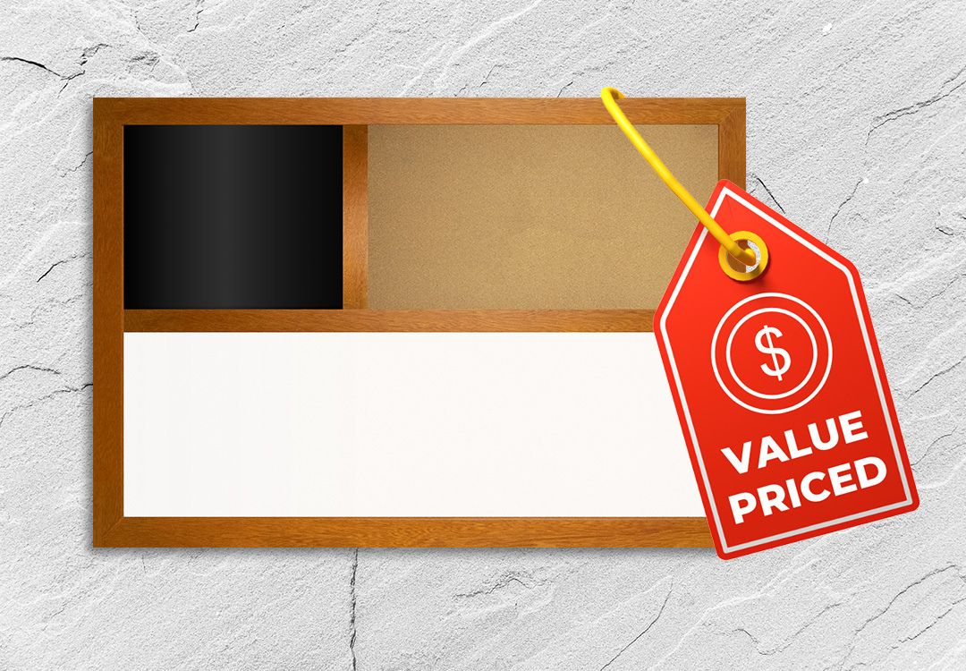 When you use one of the 3 Standard Options shown above, you can make the overall width and high any size you like. You can personalize combination boards that are very long and narrow - or very thin and high. You simply pick the format and select the material - we will create the combination board to fit your custom size.