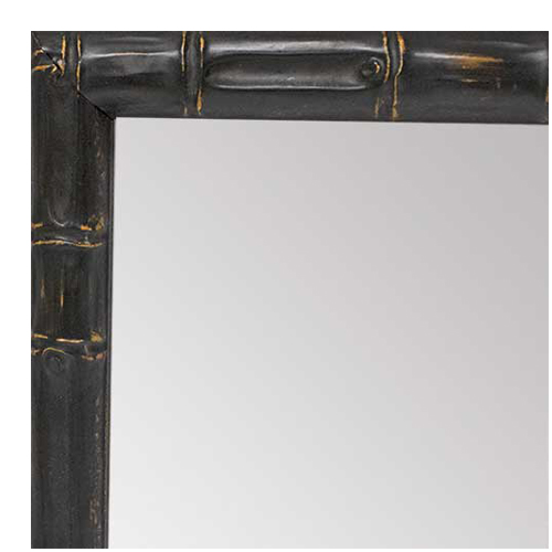 Distressed Antiqued Black & Gold Tropical Bamboo Custom Framed Mirror