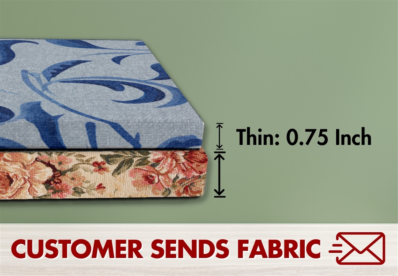 - Consider the direction of the pattern and the width of the bolt of fabric. Fabric often comes in a width of 54" - Assure your fabric will run in the correct direction and will be enough to cover your unique size