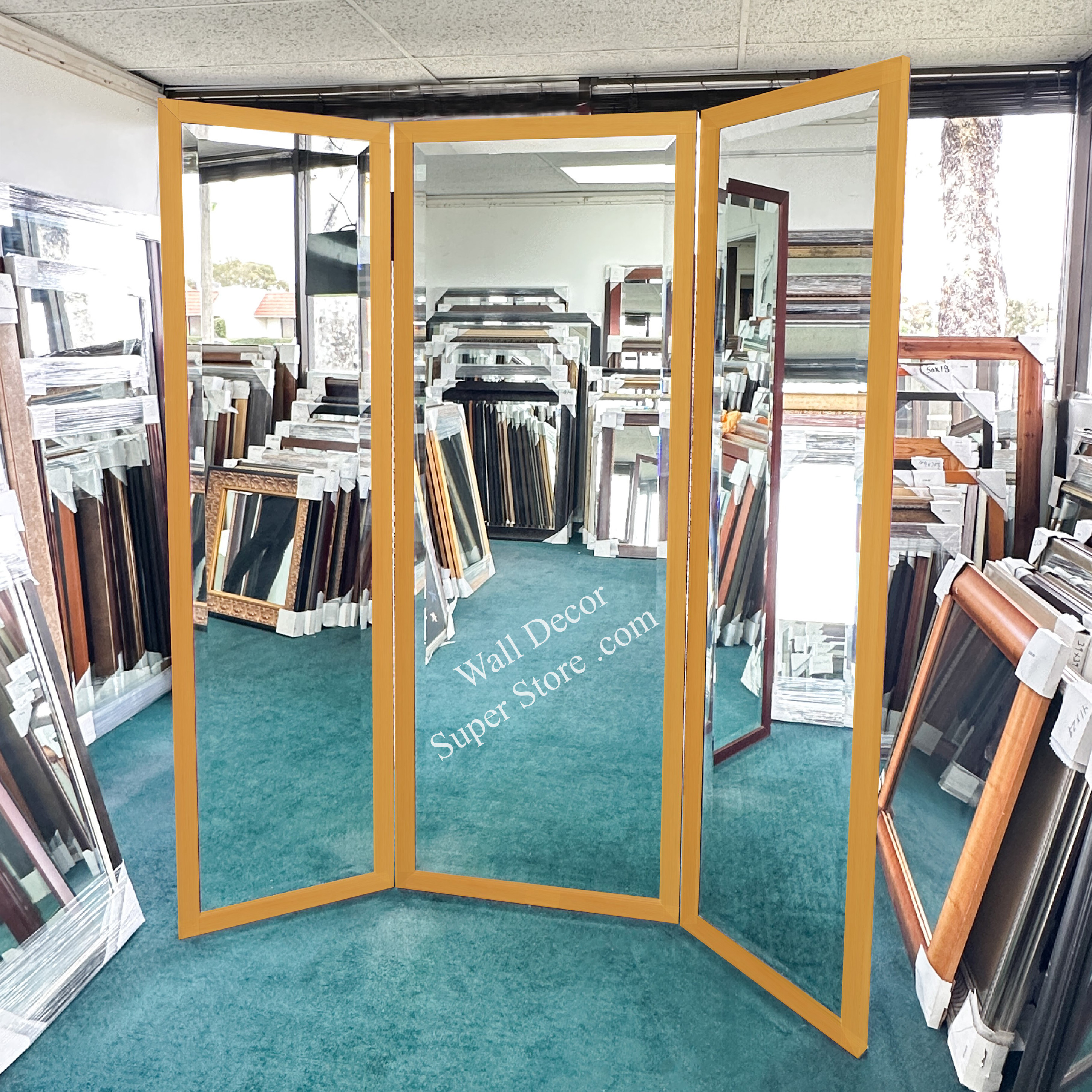 Every tri fold mirror can easily be configured as a custom made 3 panel mirror room divider - perfect for the size of your room. Simply enter "Make My Mirror A Mirrored Room Divider" in the item comments as you make your selection. We will fabricate to your request. If you would like additional information or have questions