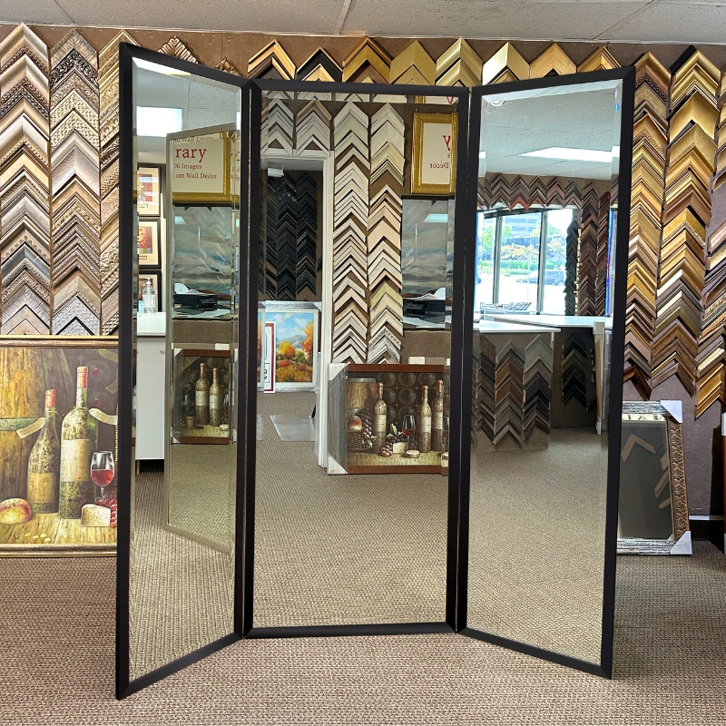 Our custom made 3-panel dressing mirrors are the perfect addition to any dressing area. With a full 360-degree view, you'll feel like you're in a department store changing room! We offer mirrors in any size to fit your needs. Our full view winged dressing mirrors are especially functional, as they allow for complete visibility. Plus, our mirrors can be both framed and frameless to match any decor.