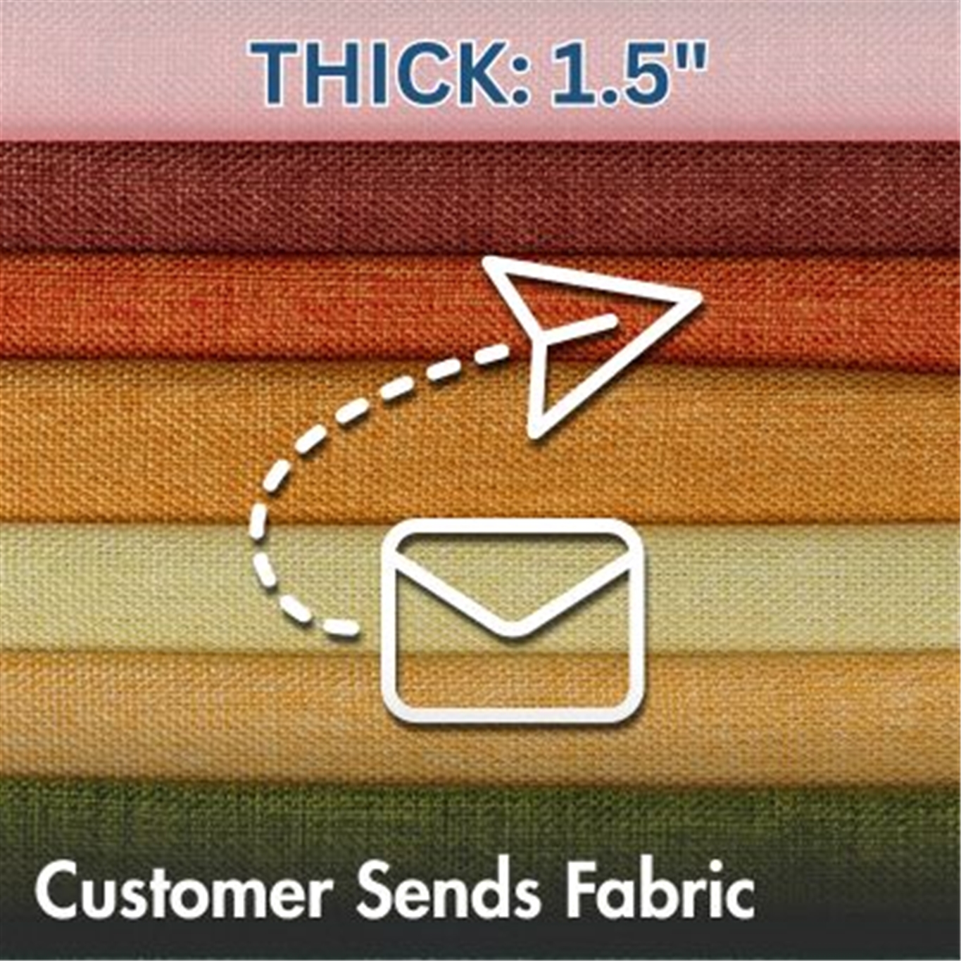 - Consider the direction of the pattern and the width of the bolt of fabric. Fabric often comes in a width of 54" - Assure your fabric will run in the correct direction and will be enough to cover your unique size