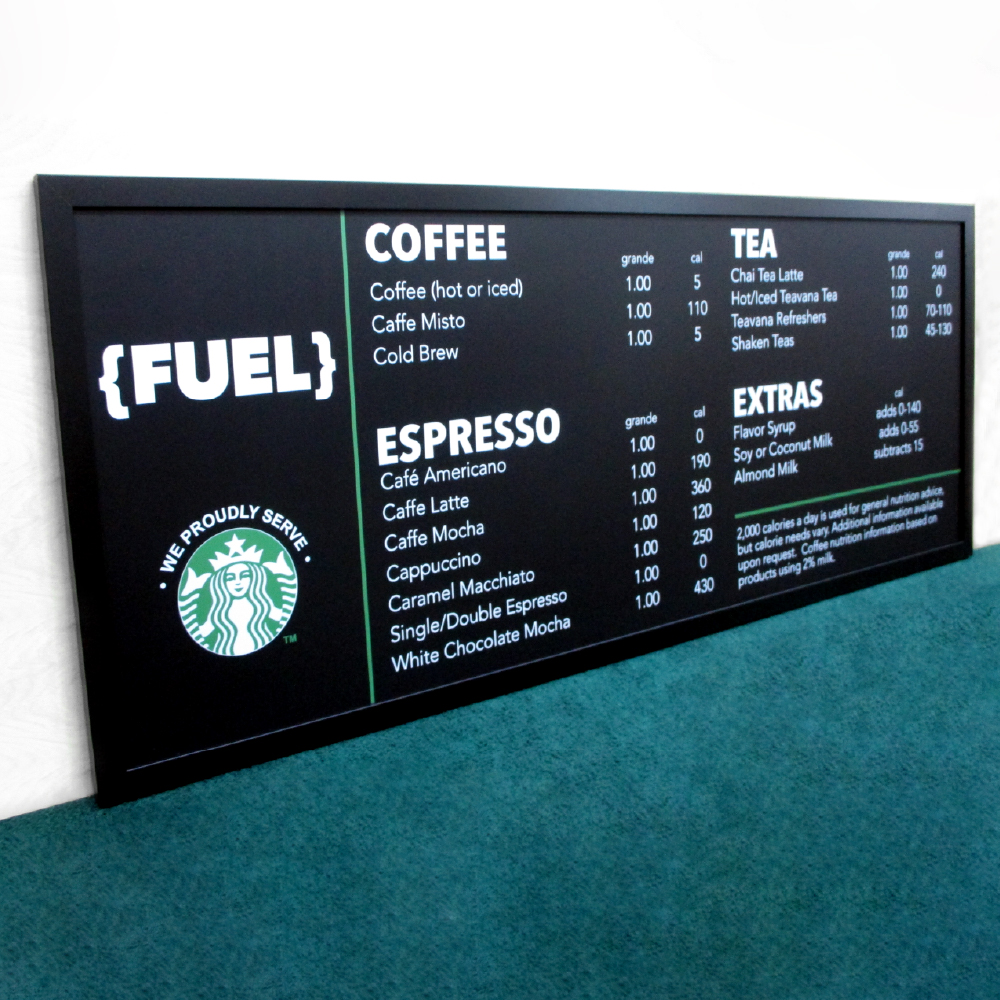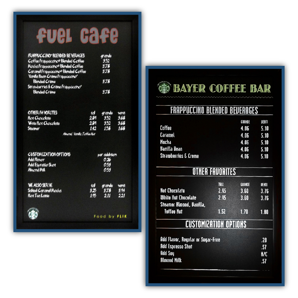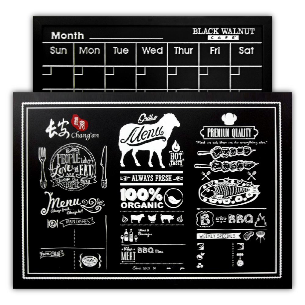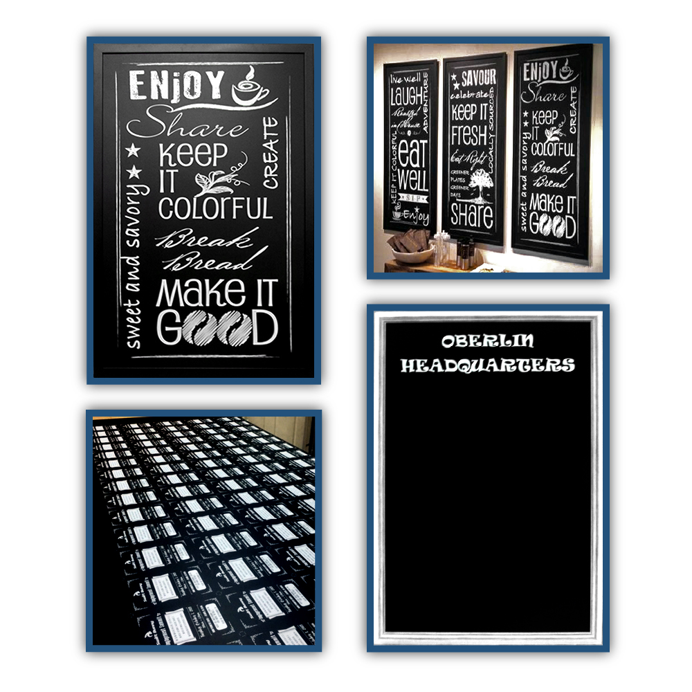 Custom printed chalkboards - make any size - use your high quality vector file - we can print in any size up to 4 feet x 8 feet. Framed or frameless. Contact us for details