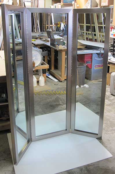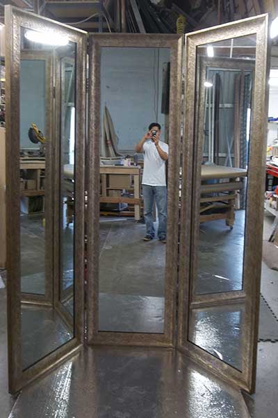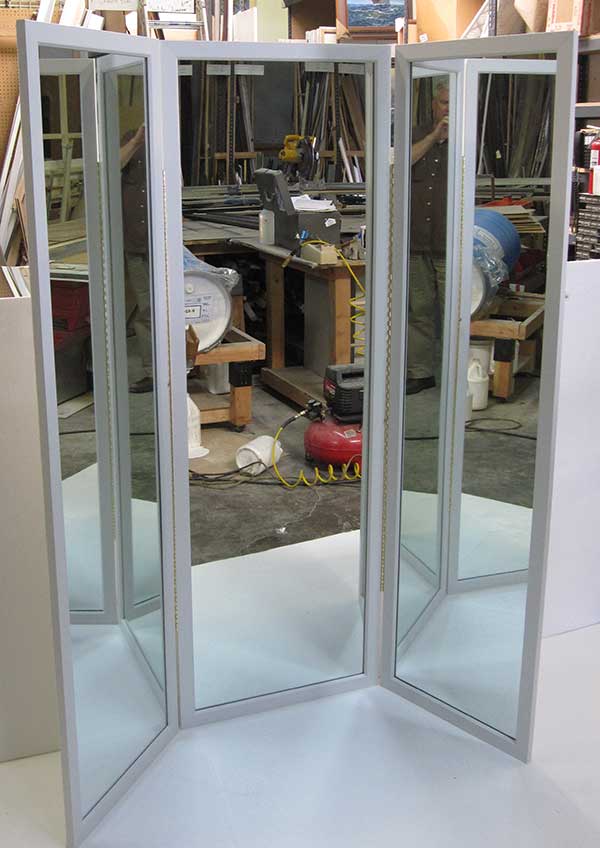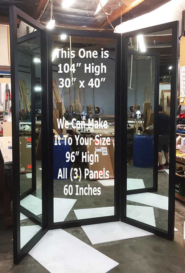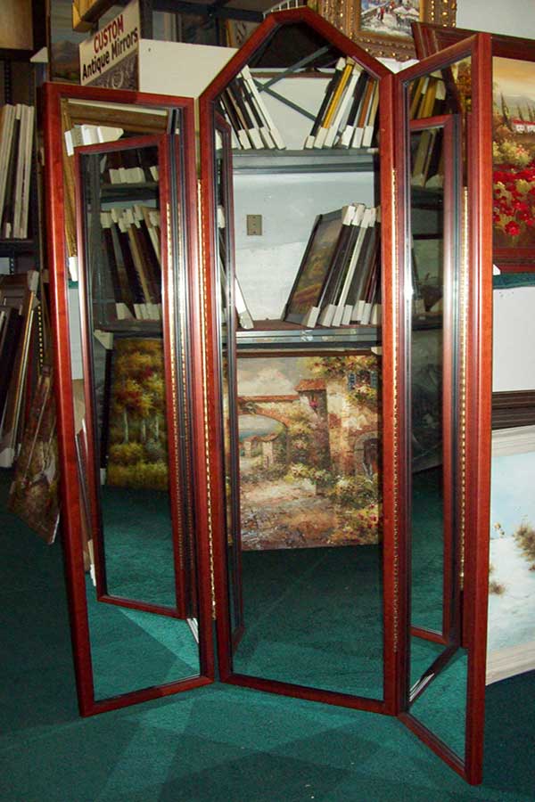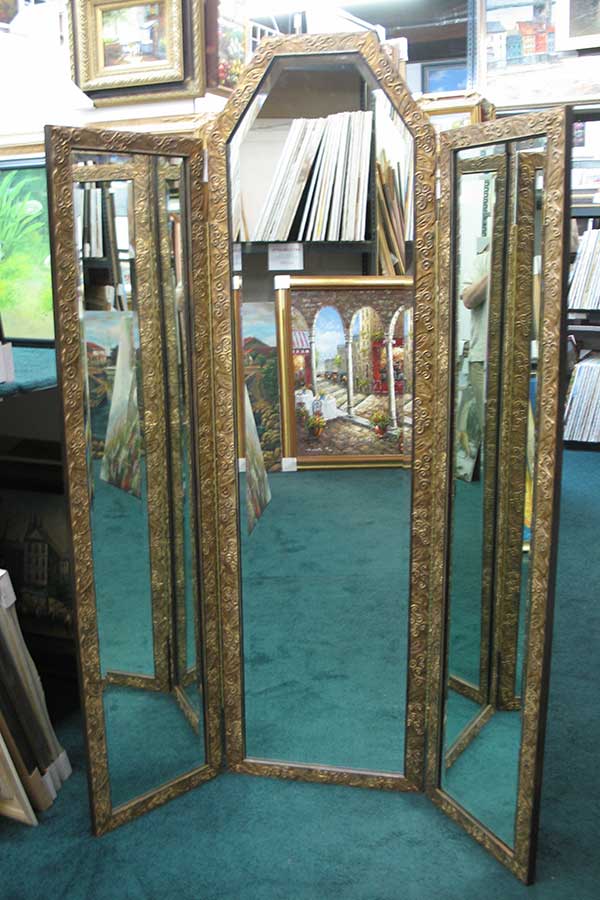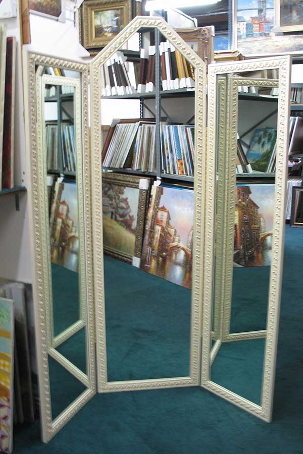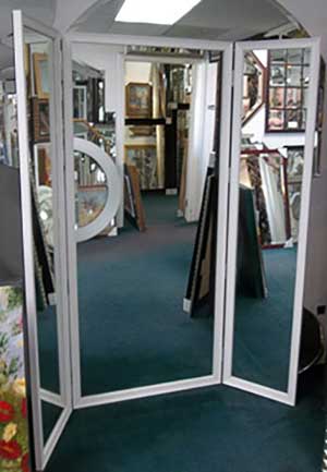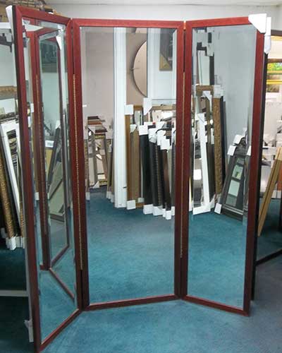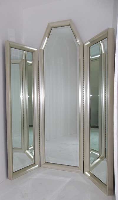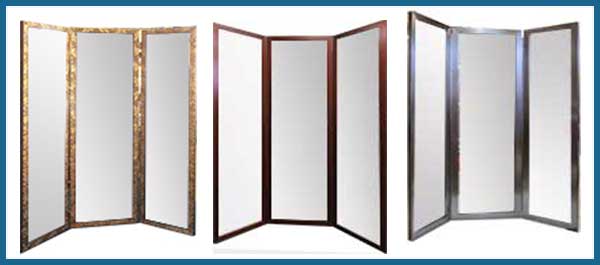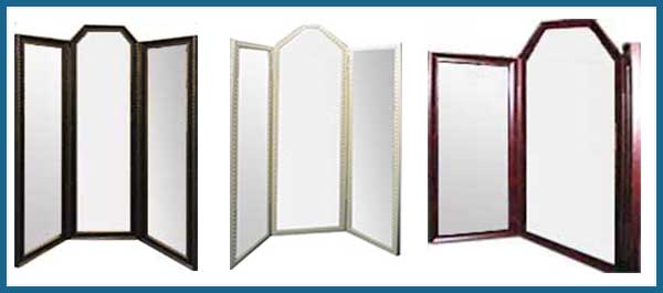 Our custom three panel mirrors can be made in any size. Full length winged mirrors are very functional dressing mirrors as they allow a full 360 degree visibility. Most three panel wardrobe mirrors can be wall mounted. We fabricate both framed and frameless three panel mirrors. Our custom three panel mirrors can be made in any size. Full length winged mirrors are very functional dressing mirrors as they allow a full 360 degree visibility. Most three panel wardrobe mirrors can be wall mounted. We fabricate both framed and frameless three panel mirrors.