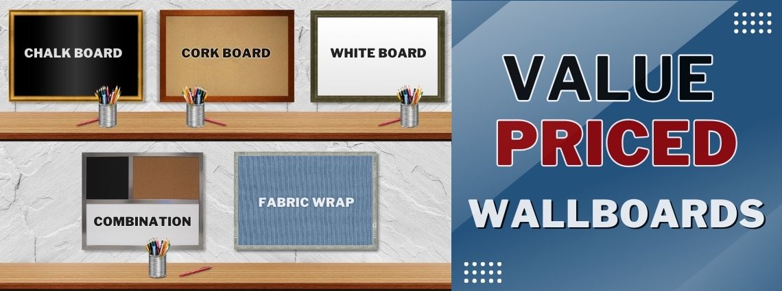 Custom Wallboards: Over 60 Value Price Cork, Chalk, Dry Erase, Combination, & Fabric Wrap Boards are Shown Below.