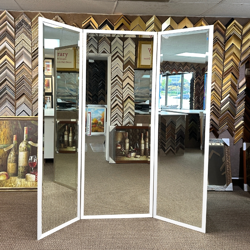 Our custom made 3-panel dressing mirrors are the perfect addition to any dressing area. With a full 360-degree view, you'll feel like you're in a department store changing room! We offer mirrors in any size to fit your needs. Our full view winged dressing mirrors are especially functional, as they allow for complete visibility. Plus, our mirrors can be both framed and frameless to match any decor.